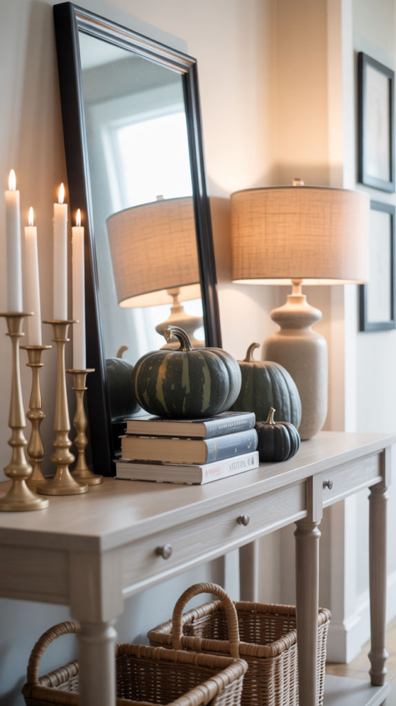In this post you will find easy Halloween decor ideas for your entryway table, front porch, and outdoor spaces. From simple candlelight to layered pumpkins, these tips help you create a festive home that feels welcoming day and night.