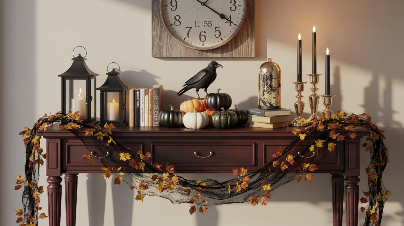 For a touch of Halloween drama, add a decorative black raven near your books or lanterns. Its presence can bring an eerie and captivating spooky charm vibe to your decor.